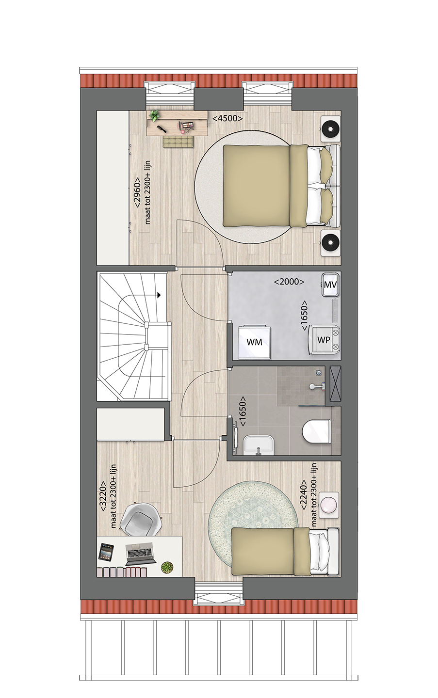• 2 slaapkamers op de 1e verdieping